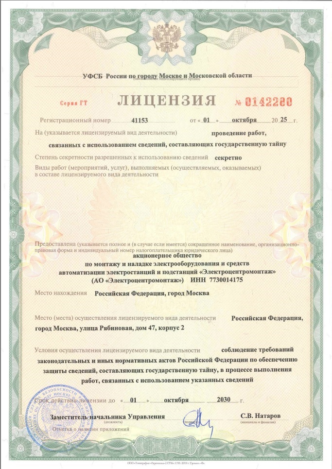 Лицензия на проведение работ связанных с использованием сведений ,составляющих государственную тайну